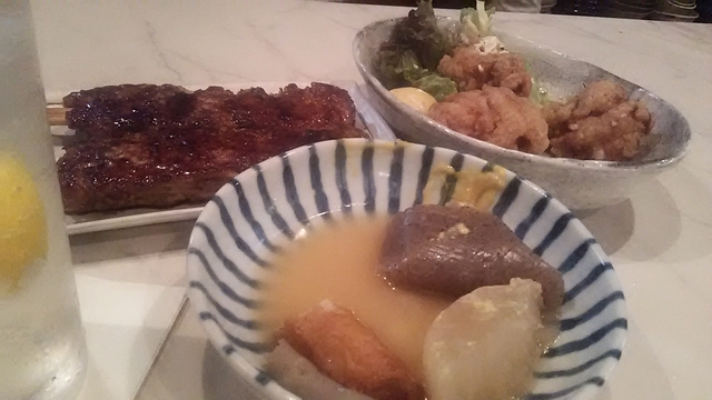 おでん、各々一個120円!安くてウマイ! しかもすぐ食べれる。 外は寒い、速攻熱燗とおでんで暖まりー。 好きなの自分で取らせてくれます。