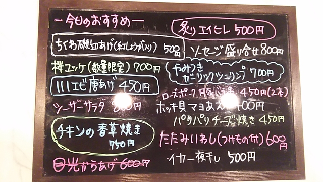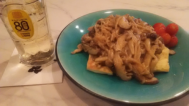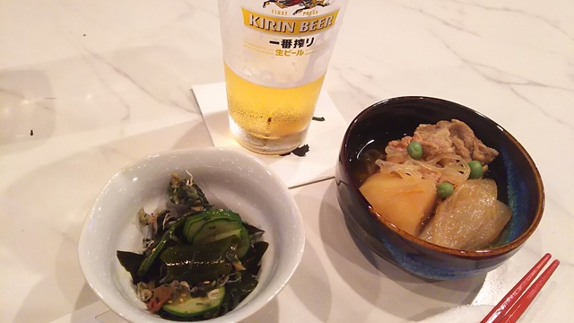 土曜日の夜に伺いました。 階段を上り、ドアを開けます。 とりあえずのビールをオーダー。 カウンターに座り、お通しを頂きました。 また、お通しが美味しい。 個人的には高評価です。