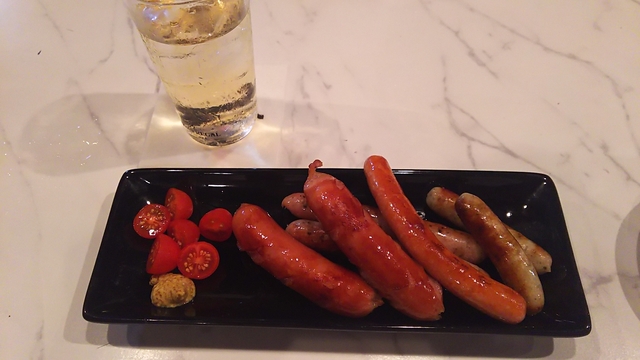 大平ジモピーです。 夕べも突如友人からお呼びがかかりカウンターへ。笑w ソーセージ盛り合せです、4種のソーセージなんですが、どれも美味しい。 ヤング?ママさんのセンス抜群です!笑w