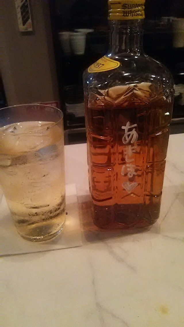 ボトル入れました。笑 魚平さん、いつもご馳走してくれるから少しだけ飲んでいいですよ。 少しだけですよ。