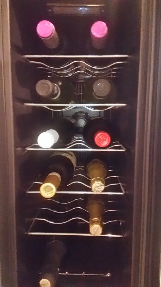 ワイン飲んで二日酔い。 お洒落なワインクーラーから、白ワインをチョイスしたら美味しかったよ。 ワイン美味しいけど、二日酔いやだやだo(><;)(;><)o