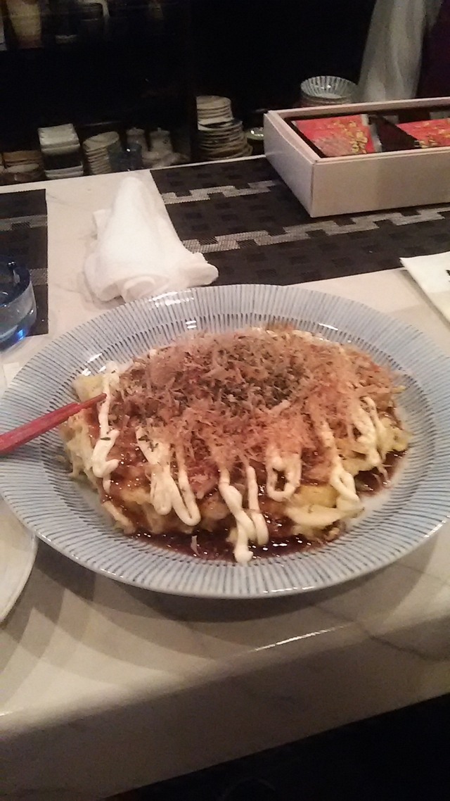 こんばんは! お好み焼き食べたいって言ってみました。 メニューにないよ。 特別に栄子さんが、作りました。 ありもので作ってくれてありがとう。(^^)v 美味しかったです。笑