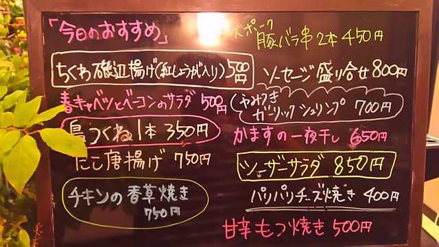 本日のおすすめ値ビューです。 ローズポーク豚バラ串美味しかった。 かますの一夜干しもめずらしくてなかなか美味かった。