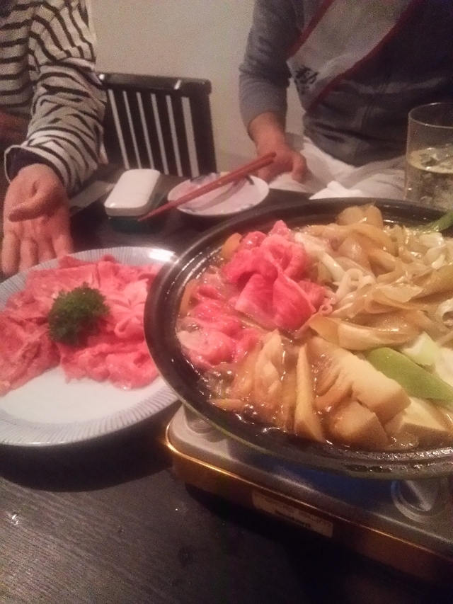 宴会しました、米沢牛のすき焼きつくってもらった。笑顔 凄くおいしかった。 2キレしかたべられなかったけど、また食べたいです。