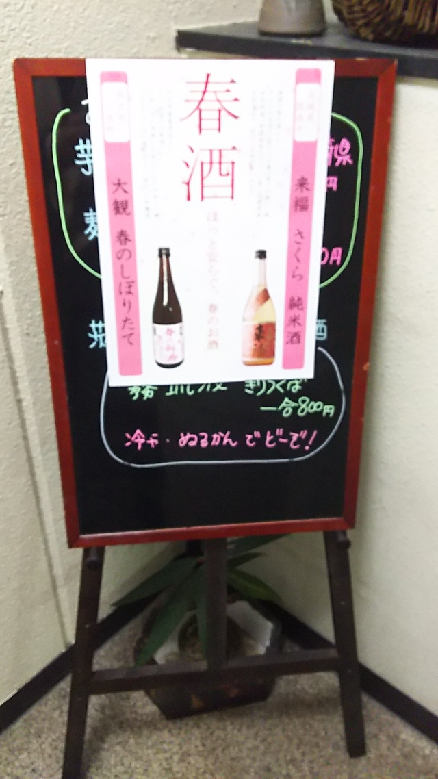 階段上がったところに春限定大観のメニュー看板ありました。 飲んでみたいと思います。 他にもいいお酒がありましたよ。