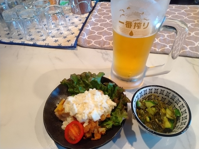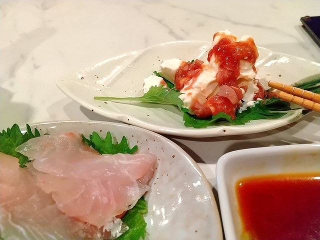 お通しが美味しいです、それだけで二杯いけます。 新メニューで酒盗クリームチーズ(350円)登場しました、これは酒が進みますな、旨い。
