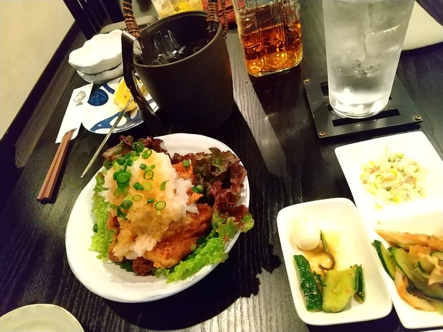 2023/03 訪問 1回目 Dinner 3.5 ¥2,500~¥3,500/1人 詳細 料理・味4.0サービス3.5雰囲気3.5CP3.5酒・ドリンク4.0 日立出張2泊目。1軒目に訪問したお店が地雷店だったので、飲み直しです。 特に当てはなかったのですが、駅近くを歩いてみました。 なかなか渋いお店を探し出せず、小雨も降っていたので通りかかりの<庵>さんに入店。 この選択は正解でした。 1軒目でビールを飲んでいたので、日本酒でスタート。 3種類の茨城の地酒日本酒「飲み比べセット」がありました。各70mlくらいだそうです。 万華(清酒)、裏大観(純米吟醸酒)、富久心(純米酒)。 万華は柔らかでキメが細かく料理との相性よいです。 裏大観は甘さのあとフルーティーな味わい。飲みやすくて美味しいです。この3銘柄の中では最も好みです。 富久心はすっきりと飲みやすく、とても美味しいお酒です。 料理は、手作りつくね、目光り唐揚げ、酒盗クリームチーズを注文。 どれも満足です。 店内はやや暗めで、4人掛けテーブル✕3が配置されています。 カウンター4、5人といったところでしょうか。 大騒ぎしている集団はなく、いい雰囲気です。 1人での訪問でしたが、テーブルでゆっくりできました。 飲み比べセット、お通し、料理3品で3,000円程度。 リーズナブルで、日本酒と料理をおいしくいただけました。 日立出張の楽しみがまた1つ増えました。