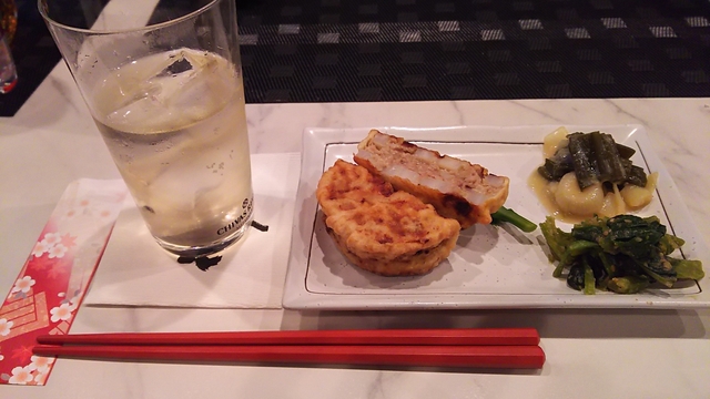 大平ジモピーです。 本日のお通しです。 れんこんのはさみ揚げ、菜の花のおひたし、葱ぬた、小松菜のごま和え。 出来あいのものがぱっと出てくるんじゃないですよ、どれもお手製。 僕ら呑兵衛のためにお通しも手を抜かないんですって。 オーナーはいつも呑兵衛目線、自分が呑兵衛だからですって。笑w れんこんの挟みあげは熱々出来立て、表面を照り焼きっぽく焼いてあり美味しいかったです。 春の味覚・菜の花をからしの効いたおひたしに、 葱ぬたは甘い酢味噌で、まさしくおふくろの味、 小松菜のごま和えは醤油、砂糖、黒のすりごま、お酢で甘くて美味しい。