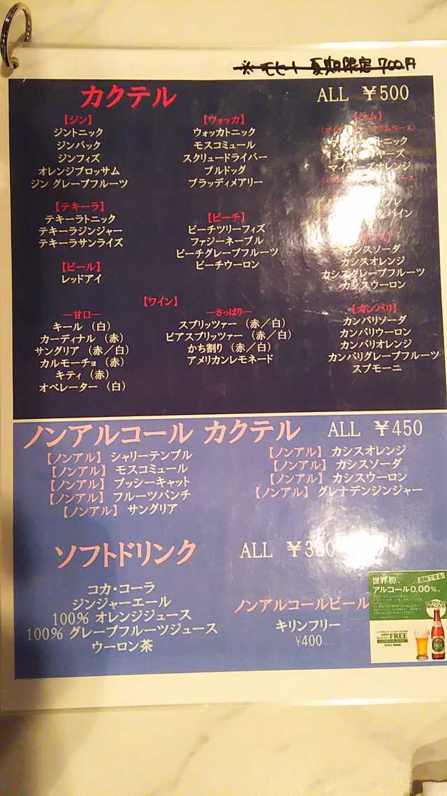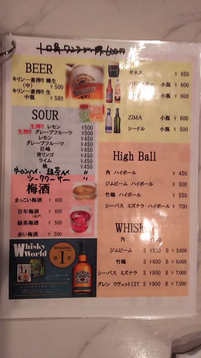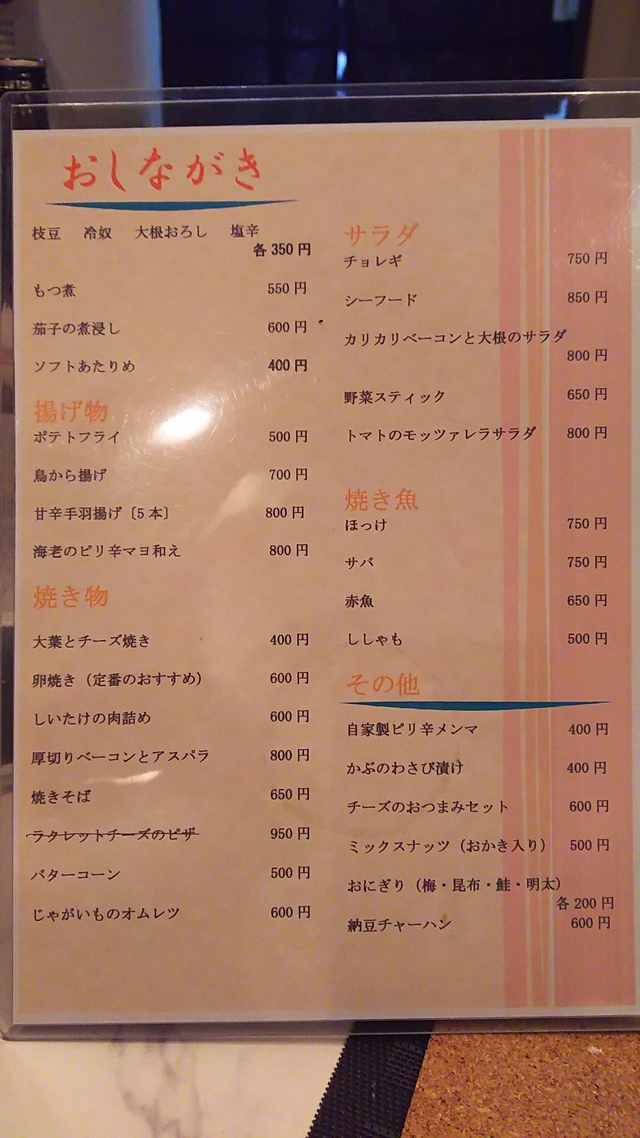飲み物の種類が豊富です。 日本酒(地酒)、ワイン、カクテル、焼酎、ビール、ウイスキー、ノンアルコールまで、いろいろありました。