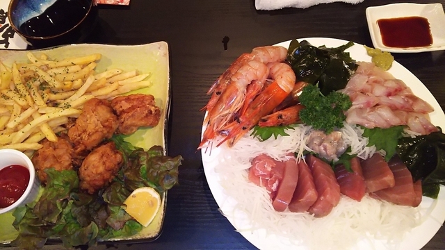 刺身が分厚い❗ から揚げうわさ通りうまいね。 ポテトも揚げたてでうまかった。 また利用させてもらきます。