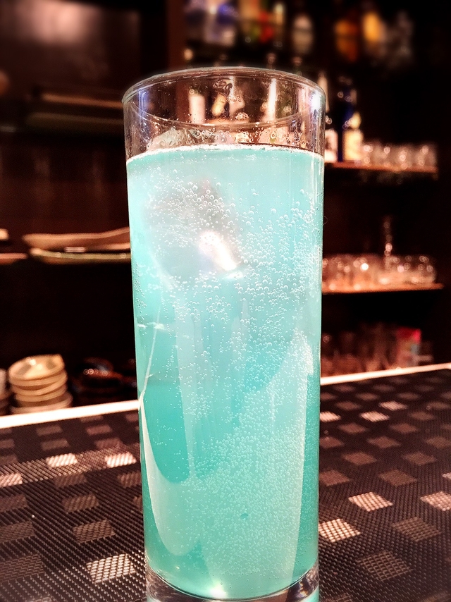 たまにはいいかなぁってたのんだよ。 カクテル! チャイナブルー! アルコール濃くしてくれて嬉しい。