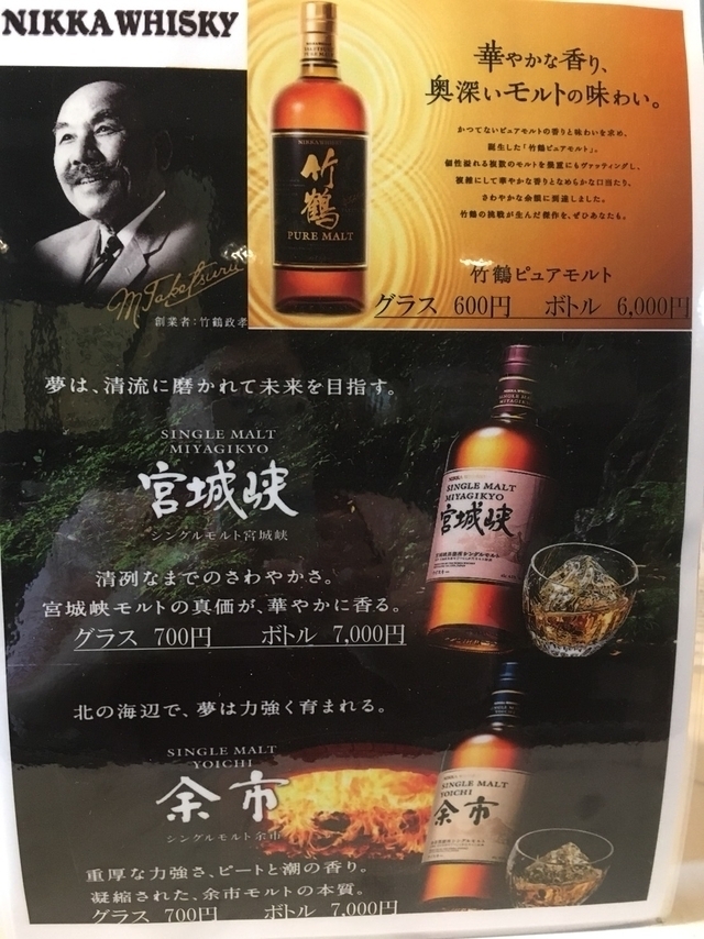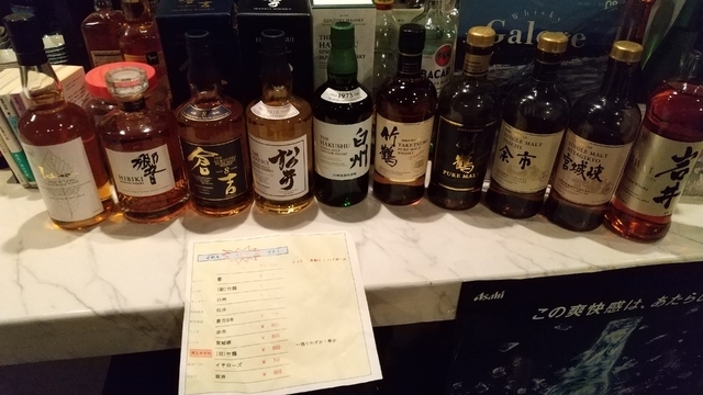 驚きました、見てくださいこの怒涛のラインナップ、どれも滅多ににお目にかかれない代物ばかり。しかも良心的なお値段で試せるとは。新旧竹鶴の飲み比べができました、旧竹鶴は在庫限りだそうで、今時、希少な存在だと思います。