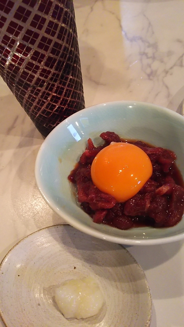ご無沙汰です大平ジモピーです。 桜ユッケ食べました?食べないと(笑)w あっさりヘルシーな赤身で肉の質・柔らかさも最高です! スタミナばっちり! にんにくor豆板醤をからめて。 僕はにんにく派!