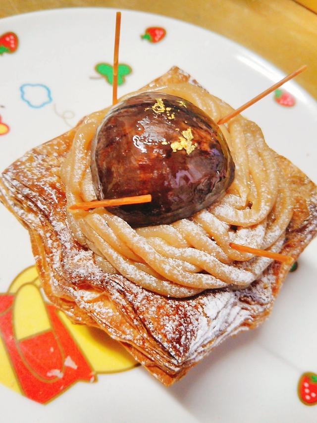 マロンシャンティ♪ モンブランみたいなパンでした!! デニッシュ生地でモンブランクリームに大きな栗が乗ってます!! ボリュームもあってスイーツなパンでした☆