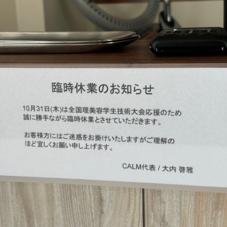 全国理容美容学生競技大会応援のため誠に勝手ながら臨時休業とさせていただきます。
