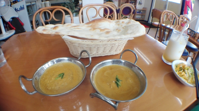 ランチタイムに初訪問。 ランチメニューから、Cセットとクーポンドリンクでマンゴーラッシーをチョイス Cセットはカレー2種、サラダ、ナンまたはライスとなっています。ナン、ライスは おかわり自由、辛さは5段階から選べます。 香辛料の効いたインドカレーに、焼きたてのナンが良く合います。大きめのナンを食べ終わる頃 店員さんが、ナンかライスのおかわりを聞きにきたので 「へえ、ナンとライスどっちでもいいんだ」 と思いつつ次はライスを注文! お腹いっぱいになりました。 インドカレーには、ナンの方が合いますね。