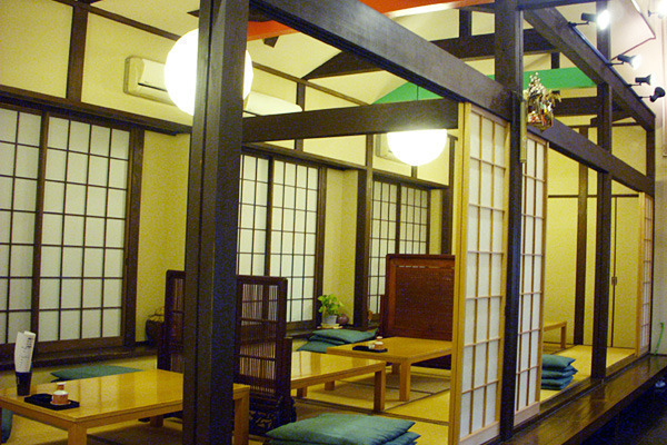 吹き抜け空間が開放的なお座敷。個室もあり。