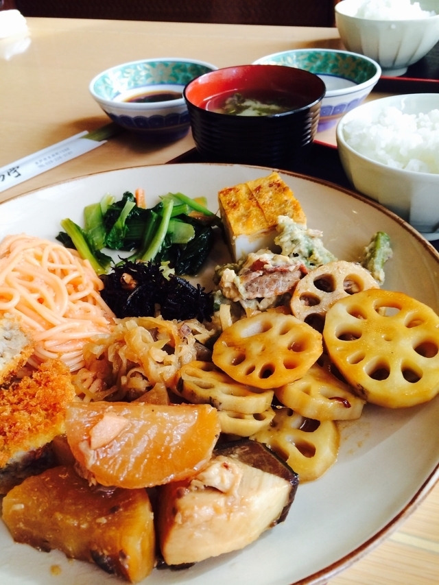 いばナビ ランパラ企画巡り4店目にお邪魔しました!天井が高くて古民家風の店内にはおっきな薪ストーブと、素敵な雰囲気もグー! お目当ての惣菜バイキングは、どれも素材の新鮮さが伝わってきます。野菜それぞれの火の通し方も抜群!特にぶり大根と卵焼きにはやられました! 旨い‼︎ 体に優しいお惣菜の数々を、お腹いっぱい楽しませて頂きましたー!