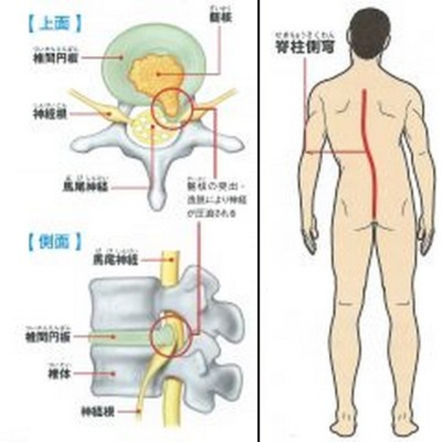 【なぜ飛出した?】 元々、椎間板の耐久性は高いのですが、 負担のかかる姿勢や動作、睡眠不足、体の歪み、生活習慣などの影響を受け疲労がたまる。 そして、疲労困憊(ひろうこんぱい)の椎間板が傷付き中にある“髄核”(クッションの芯)に負荷がかかり限界を超え、 ついに飛び出してしまうのです。 【ヘルニア特有の痛み・シビレ】 腰・お尻・足などに猛烈な痛みやシビレを引き起こすのは、飛び出した椎間板が神経を圧迫しているからで、 この症状は一定の姿勢で痛み、楽な姿勢では痛くないのです。 これは、神経が圧迫される体勢かどうかの違いです。 【痛みの逃がし方】 横になって寝ているのが割と楽な傾向にあります。 強い痛みが出るのは前かがみ動作。立っていたり座っていたりするのも辛いです。 辛い痛みを避ける為、自然と腰が曲がり体が傾いてしまったりしますので早めに来院してください。
