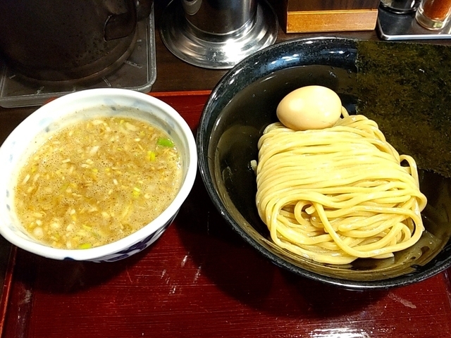 ●小つけめん970円 スープはドロドロ系の、濃厚魚介豚骨。 角切りチャーシューとメンマ、味玉付き。 麺は、歯ごたえの良い太麺。 最後にスープ割りをもらってスープも美味しくいただきました。