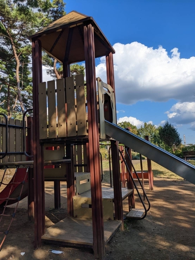 静かでキレイ、そしてわりと広い公園です。 ちょっとした遊具だけではなくハトもいたり鯉もいたり、さまざま楽しめる公園です。