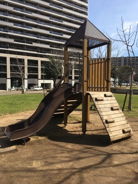 日当たりの良い公園で日光浴にはぴったりだと思います。遊具は1つしかありません。滑り台がちょっと急なので大人の人が付き添ってあげたほうがよいです。