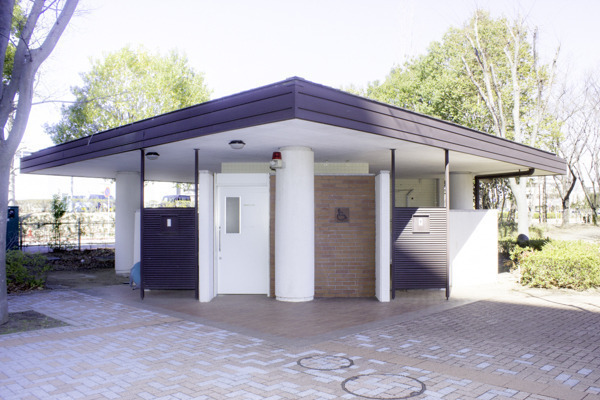 道沿いには綺麗な多目的トイレが設置されています。