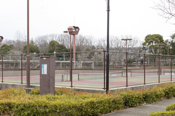 テニスコートは12面あり、全天候型でナイター照明も完備。