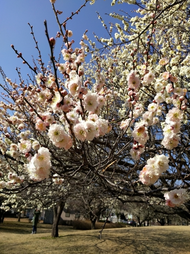 名前に梅という字が入ってるだけあって、沢山の梅の木がありました! 白、薄ピンク、濃いピンクの梅が咲いていました! 日曜だったので、レジャーシートを敷いてピクニックをしている家族連れの方が多かったです! 住宅街の中にあるので駐車場が無いのが少し難点ですが、行って損は無い公園だと思いました! 是非また行きたいと思いました!