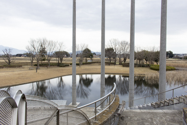 園内に入ると、まず目につくのがコンクリートで出来たデザイン性のある建物。そしてその先には穏やかな池が印象的で、心が躍るいい景色が広がります。波のない池は鏡のようで神秘的です。そのわきには芝生広場がひろがり、ボール遊びが出来るスペースも♪さらにテニスコートが2面完備されています。使用する際は予約受付が必要です。窓口は東光台体育館(029-847-8272)までお電話をおねがいします。またインターネットからも予約が行える『つくば市公共施設予約システム』http://www1.city.tsukuba.ibaraki.jp/yoyaku も便利です。