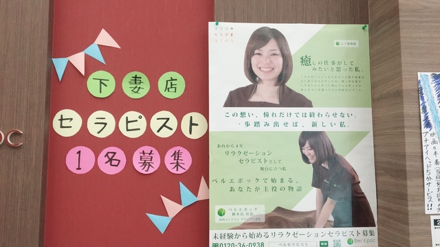 先日イバナビを見て初めて行きました! イオンモール下妻店の映画館の隣にあり、イオンには何度も行ってるのに、こちらのお店は初めて知りました^^; 電話予約をして行ったのですが、電話対応をして下さったスタッフの方がとても親切で好印象でした。 来店後も初めてという事で、しっかりとカウンセリングをしてくださり、自分の身体に合ったケアを提案して頂きました!ケアもアロマボディケア80分をやったのですが、ケア中は気持ちよくて寝てしまい(笑)終わったあとは身体がスッキリしてました!!足が浮腫みやすいのですが、立ち上がったら足が軽くてびっくりです!!これから通わせて頂きます♪