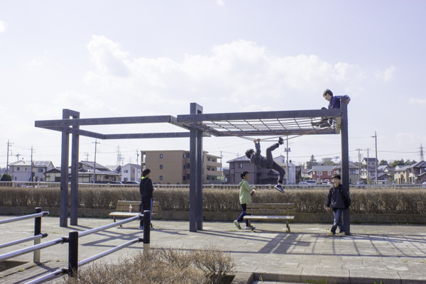 サンキつくば店の隣にある大きな調整池。ここは公園になっており、広場は芝生になっており、箱型ブランコやかわいい動物たちの乗り物があります。池のそばには、子供たちがアクロバットに遊べるコーナーも。ベンチに座って、のんびりしたひとときを過ごすのもオススメです。