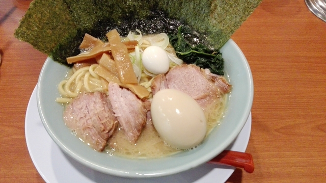初来訪。券売機前で少々悩むが、 人気ナンバー1のポップにつられ920円と自分的にはちょっとお高めだが 特清六家豚骨醤油を注文。 チャーシュー、メンマ、味玉、うずらの卵、ネキ ほうれん草、のり5枚と、全部のせのような感じ。豚骨スープと相まって一杯でお腹いっぱい になります。スープがぬるめだったので、 熱々のスープだったら、もっと美味しく感じたでしょう。