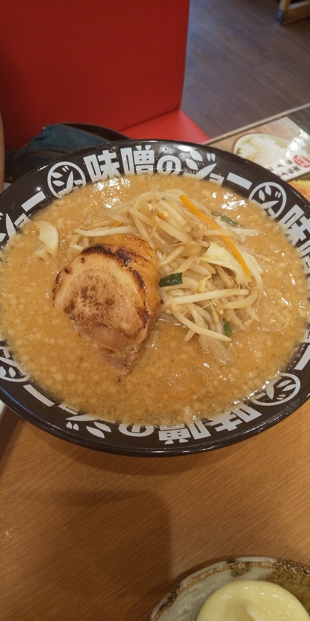 ラーメンが出来上がるとゴングがなる笑何とも面白いお店です。女性では食べきれない人もいるほどボリューム満点です。コッテリ味噌ラーメン!