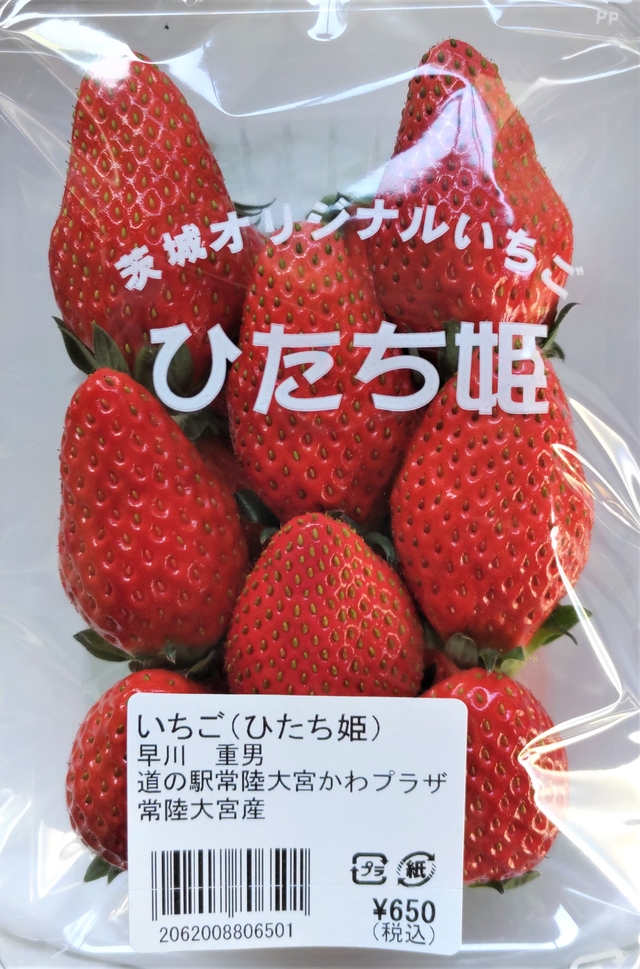 【奥久慈いちごフェア開催中】(~4/25) 常陸大宮産の色鮮やかないちごがたくさん並んでいました。 『いばらキッス』『ひたち姫』という茨城オリジナル品種があり、今回ひたち姫を購入しました。 実がしっかりとした食感で、酸味が少なくほどよい甘さでした。