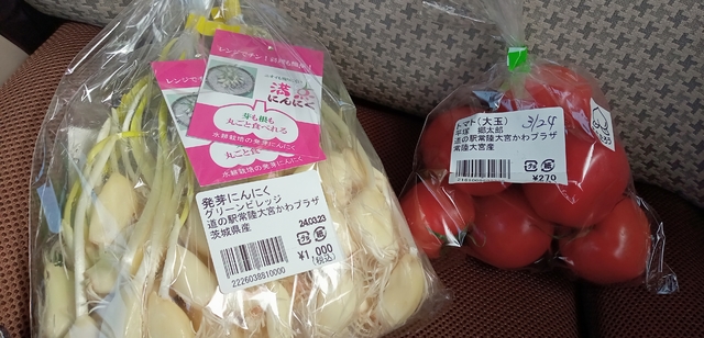 前回も購入した「発芽にんにく」とトマト(大玉)を購入しました。とても美味しいトマトで、品種はももたろうでした。オススメです!!日曜日で、駐車場は満車で、キッチンカーも出ていました。