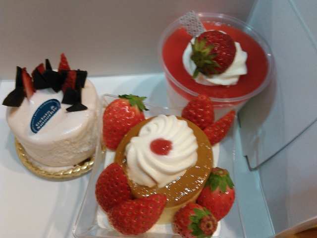 袋田の滝からの帰り道なので当然のようにピットイン。 いちごを使ったケーキのフェアをやっていたようで一つ400円のケーキが 3つで1000円とお得なので購入~。 買ってすぐに900円になってしまったのは内緒(´;ω;`) 他にヌマエビが5匹で120円、小さいけどドジョウが1匹120円と安かったので 購入しました。