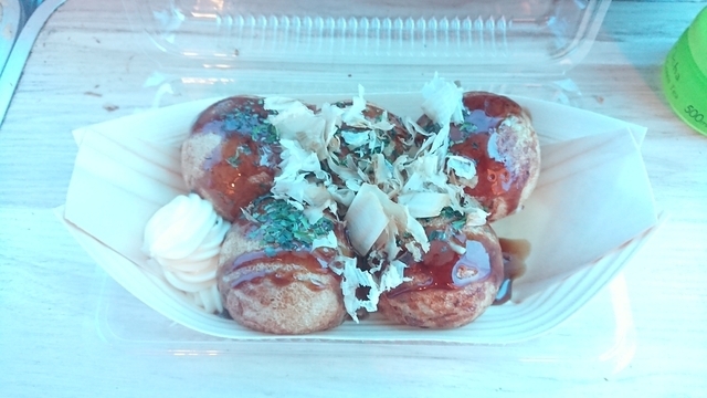 袋田の滝の帰りに久しぶりの出店、ジャンボタコ焼き タコも大きくて中身とろーりで、おいしかった。(^^)