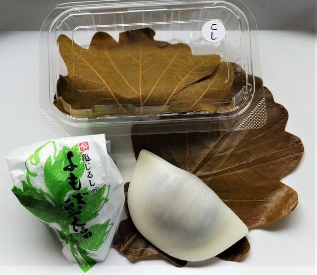 《よもぎ豆大福》248円 道の駅内にある和菓子店『亀じるし』の商品です。 『ごろごろ豆大福』が定番商品ですが、今回購入した『よもぎ豆大福』は季節限定です。 柔らかいよもぎ生地に、ほどよい甘さの粒あんがとてもおいしいです。 同じ季節限定の『柏もち』(194円)もあり、購入しました。 こちらも生地が柔らかくおいしかったです。 小さな店舗ですが、おすすめの和菓子店です。