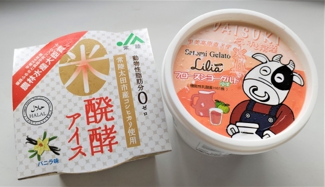 《米発酵アイス・バニラ味》200円 常陸太田市産コシヒカリと豆乳を使った氷菓です。 それほど甘くなく、さっぱりといただけます。 バニラ味の他、くりを使ったものもありました。(250円) ドバイでも販売しているそうです。 同じアイスケースの中に、里美ジェラートもありました。 こちらの方が種類がたくさんありました。 今回購入したのはゆず味(250円)です。夏におすすめです。