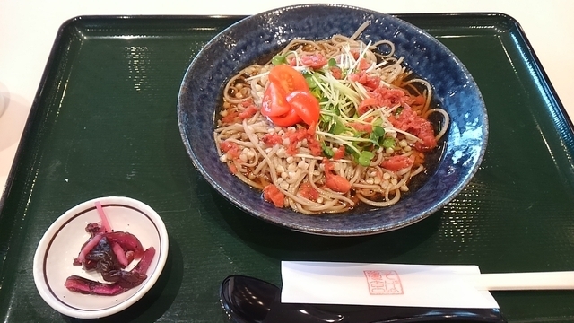 常陸秋そばフェアをやっいたのでそば店夢玄で「冷かけ梅味そば」を頼みました。冷たいそばに梅の酸味とカイワレ大根の辛味があいます。茹でたそばの実の食感も楽しめるおいしいおそばです。BIENVERTでパンとラスクを買い、直売所で野菜・こんにゃくなどを買いました。おいしい物がそろっている道の駅の買い物はたのしいです。