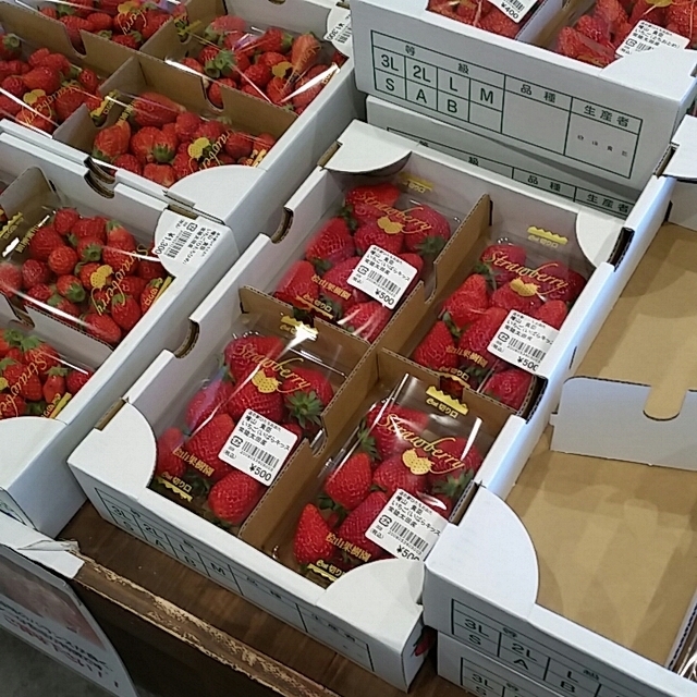 常陸太田市の道の駅。 地元名産の、常陸秋そばをはじめ、 とりたて野菜が並びます。 今は、いちごのいばらキッスが メインに置かれていました。