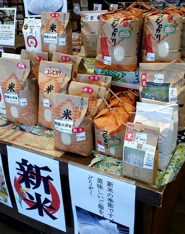 道の駅ひたちおおた黄門の郷。 地元でとれた野菜や、 今の季節、柿や新米。 フードコートには、 有名な常陸秋そば使用の 蕎麦店や、パン屋、 レストランなどが並びます。