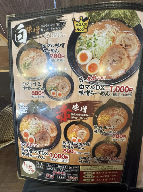 お昼に初訪問 まずはシンプルなラーメンという事で、看板メニューの熟成赤マル味噌らーめんをクーポンの唐揚げと共にいただきました。 店内は広く清潔感がありGood. 注文方式も券売機方式ではなく、席に着いてからの対面注文方式でメニューをゆっくり見て注文できるので、この方式のほうが個人的には好きです。 熟成赤味噌の香りが良く、かつマイルド。中太縮れ麵と良く絡み、ズルズルと箸が進みます。 クーポンの唐揚げ5個も思った以上に大きく食べごたえがあっておいしかったです。 近くに行ったら次は白味噌を食べてみたいですね。
