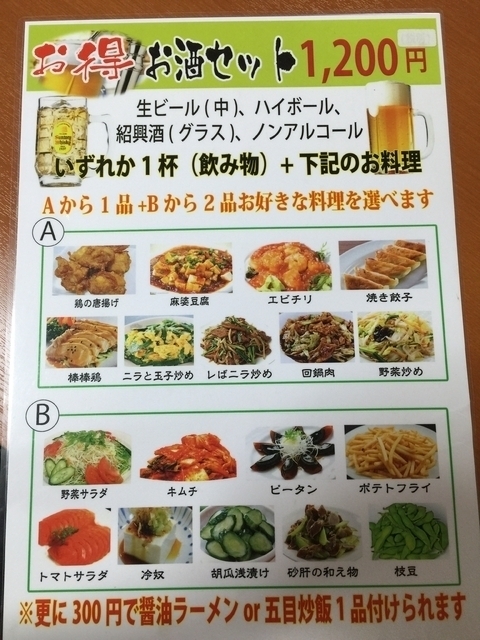 めちゃ安!ボリュームすごっ!しかもおいしい! お得 お酒セット1200円で、 量がすごい でも! お持ち帰り用のタッパーもらって詰めて帰り 味もちょっと全体的に濃いめで油多めだけど 美味しいと思います!! がっつり食べる人には絶対おすすめのお店です!