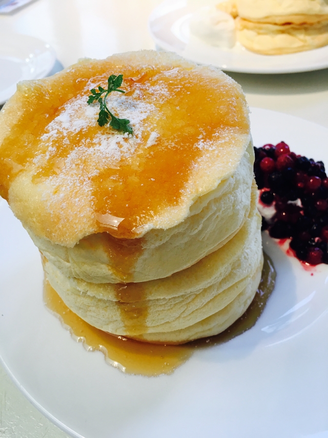今回はパンケーキだけ食べに伺いました。 高さがあって、メレンゲのフワシュワ感が味わえる生地。 シンプルに食べて、途中からトッピングを足して、楽しみました。 定番のメープルと生クリームで食べるのが美味しいです。 見た目にもボリュームがあって子供さんも喜ぶと思います