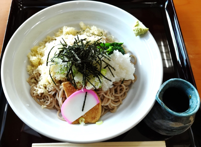 【けんちんセイロそば】 今回はつけけんちんそばをいただきました。 けんちん汁は大根やきのこ類、里芋、芋がらなど具材がたっぷりと入っていました。塩味がやや強い感じでしたが、おいしくそばをいただきました。そばの大盛もでき、うどんもあります。 けんちんセイロは1,000円、かけけんちんは900円です。