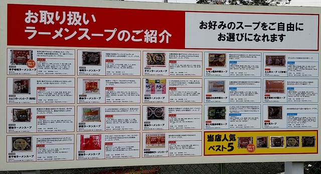 コシのある麺でスープの味が自由に選べるところが嬉しいです。安くて美味しいので人気があるようです。とんからのスープが気に入っています。夏場はつけ麺のスープや冷やし中華のスープも購入しましたがとにかくスープの種類が豊富で楽しめます。