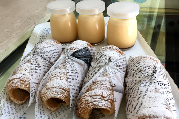 フレンチパイにクリームを詰めた「パイコルネ」と奥久慈たまごたっぷりの「なめらか焼きプリン」も人気♪