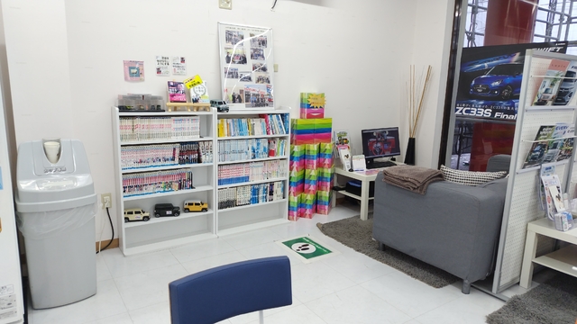 気軽に立ち寄って頂きやすいお店づくりを心がけております。中央にはキッズスペースを配し、子どもから目を離さずに商談ができます。車検を待つ間もくつろいでお過ごし頂けるよう、ソファスペースにドリンクサービス。試乗車も豊富にそろえておりますので、お気軽にお越し下さい!